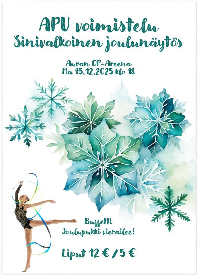 APU Voimistelun perinteinen joulunäytös 15.12.2025 kello 18.00.